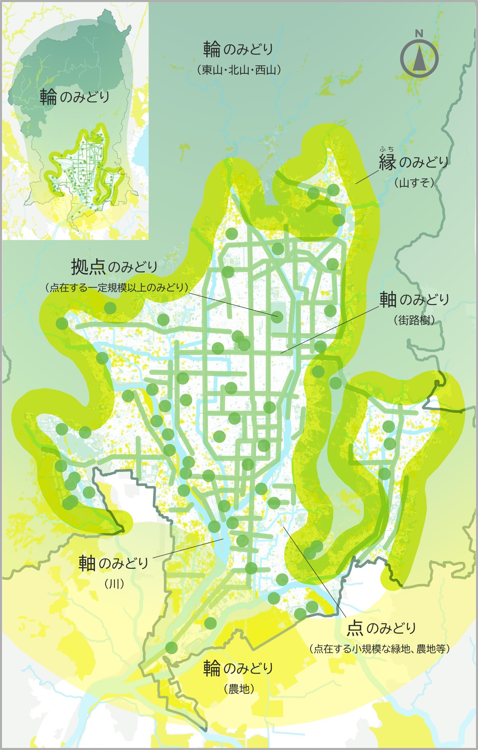 本計画の目的は理念の実現にあり、そのために、京都のあらゆるみどりの保全と緑化の推進について、理念や展望、メッセージを発信します。これにより、京都に関わる多様な主体の力を結集し、みどりに関する取組を推進します。