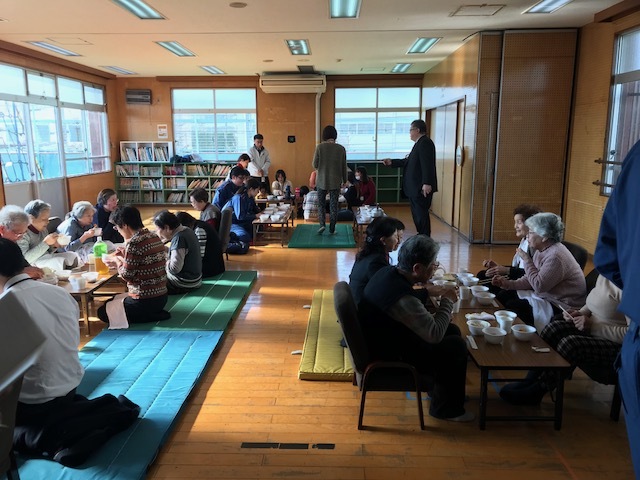 また,お昼には地元のお母さんの美味しい「炊き込みご飯」と甘くて柔らかい「南京の煮物」が振る舞われ,私もごちそうになりました。お忙しい中,皆さん前日から仕込みをされていたとのことで,お疲れ様でした。