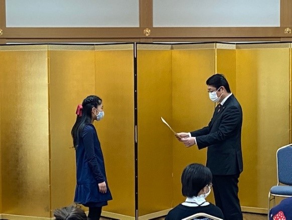 今回は,その中から,特に素晴らしい作品として京都市長賞,京都市教育長賞,上賀茂神社宮司賞,実行委員長賞が選ばれ,4人の子どもたちに表彰状が贈られました。受賞された皆さん,本当におめでとうございます。
