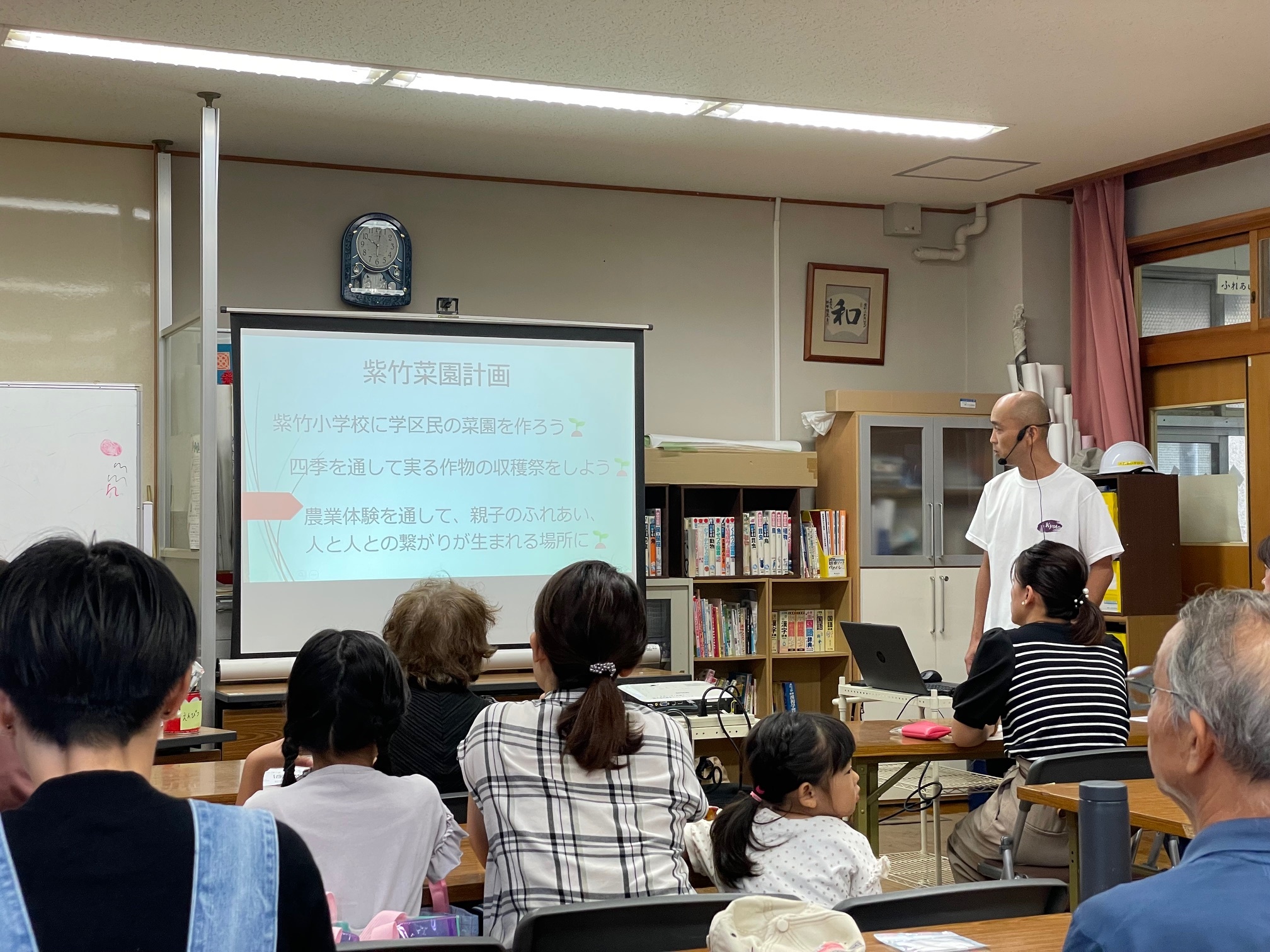 例年、紫竹まつり実行委員会様は学区の子どもたちが主役で楽しめる事業を展開されており、今年度の活動について、子どもたちに聞くと「農作物を作りたい」との声が多く、「とりあえずやってみる」を合言葉に「農業を通じたウェルビーイング(心身ともに満たされた状態)」の実現に取り組むことになったとのこと。