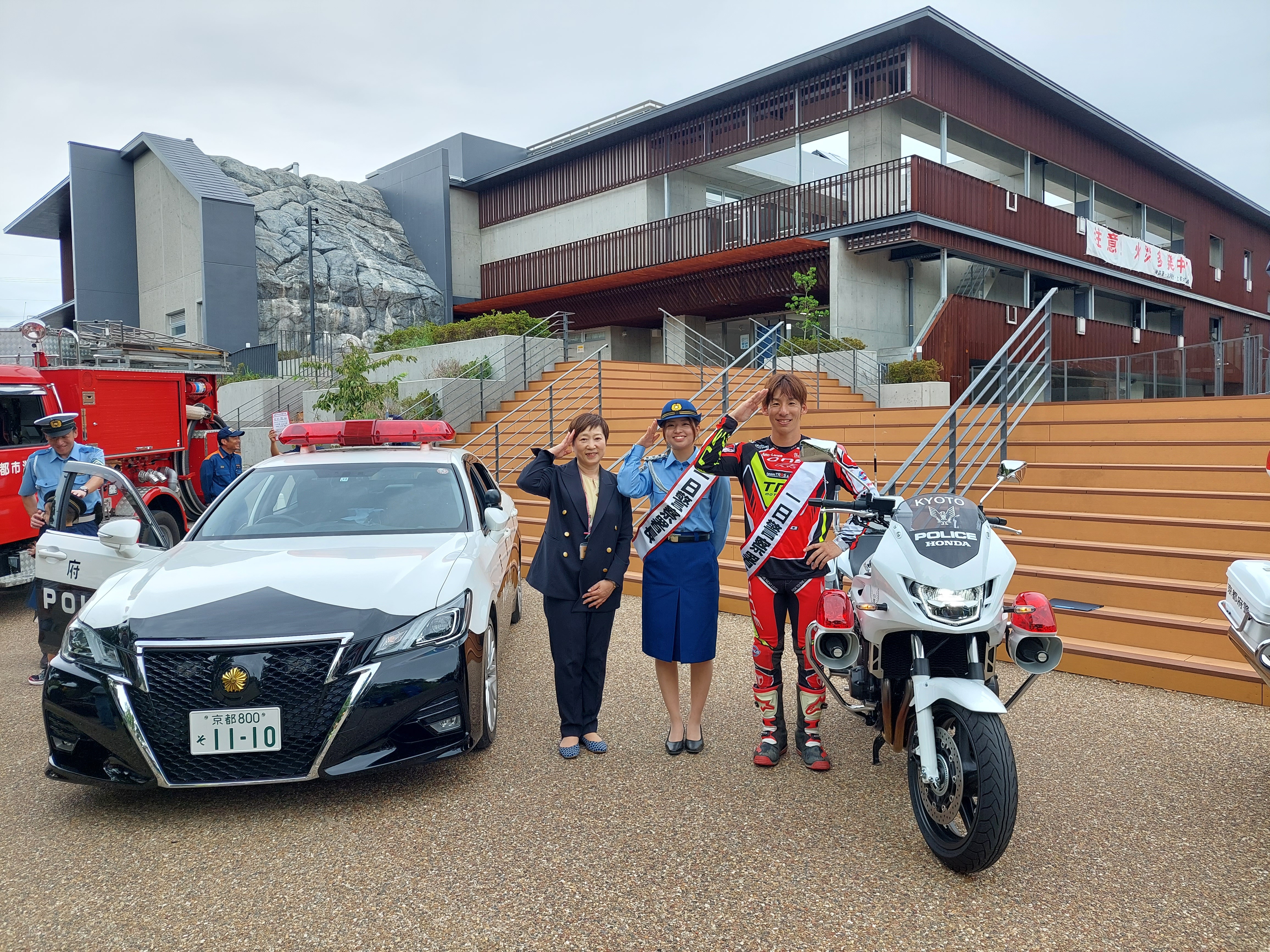 今回は、一日警察署長としてホンダドリームからトライアルライダーの柴田暁(あきら)さんと大倉芹菜(せりな)さんが御就任され、迫力のあるデモンストレーション走行を御披露いただきました。他にも、たかがみねこども園の園児の皆さんによるかわいらしいダンスやお歌の披露、安全運転サポートカーの体験試乗や展示など、子どもから大人まで、楽しみながら交通安全について学ぶことができる盛沢山の内容でした。私もサポートカーに乗車し、ペダル踏み間違い急発進抑制装置を実際に体験させていただきました。