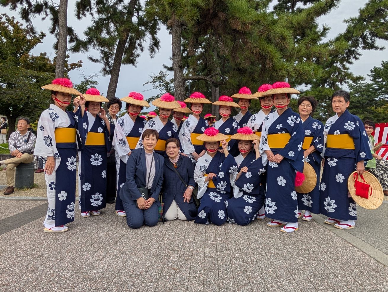 「時代祭」には、多くの市民の皆様が参加されていますが、平安神宮の参道(二条通~冷泉通)では、京都市地域女性会連合会による奉納舞踊が行われました。野田晃子会長はじめとする北区地域女性会の皆様も、当日に向けてたくさんの練習を重ねられ、この奉納舞踊に参加されましたので、激励に伺いました。