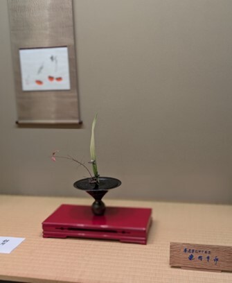 お家元の作品は、「凛」としていてお上品な雰囲気を感じました。次期お家元の専好様の作品には、枯れた葉や可愛く咲く花、小さい草花など色々なものが存在しており、まるで現代社会の有り様を見ているように思いました。