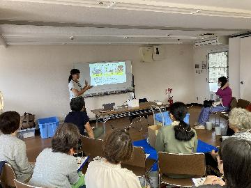 さて、講座では、講師である京都市ごみ減量推進会議事務局の藤田様から、循環型社会の実現に向けて、生ごみを資源化するコンポストづくりがごみ減量につながるのはもちろん、生ごみが溜まるストレスの軽減にもつながる、との説明がありました。