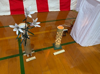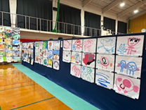 また、ステージ以外にも、大宮保育園や大宮小学校の子どもたちの絵や、地域の皆様が制作された竹細工と灯り、掛軸や手芸品など数多くの作品が展示されており、楽しませていただきました。