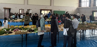 11月27日(木曜日)、大宮小学校体育館で開催されたJA京都市大宮支部・青壮年部主催の秋季農産物品評会を訪問しました。