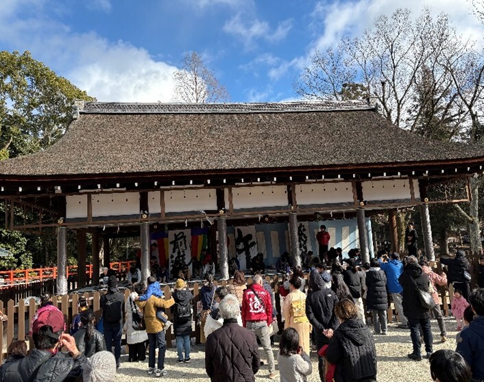 書初めが行われた場所は、国の重要文化財の馬場殿です。かつては天皇もここから賀茂競馬を眺められたそうです。