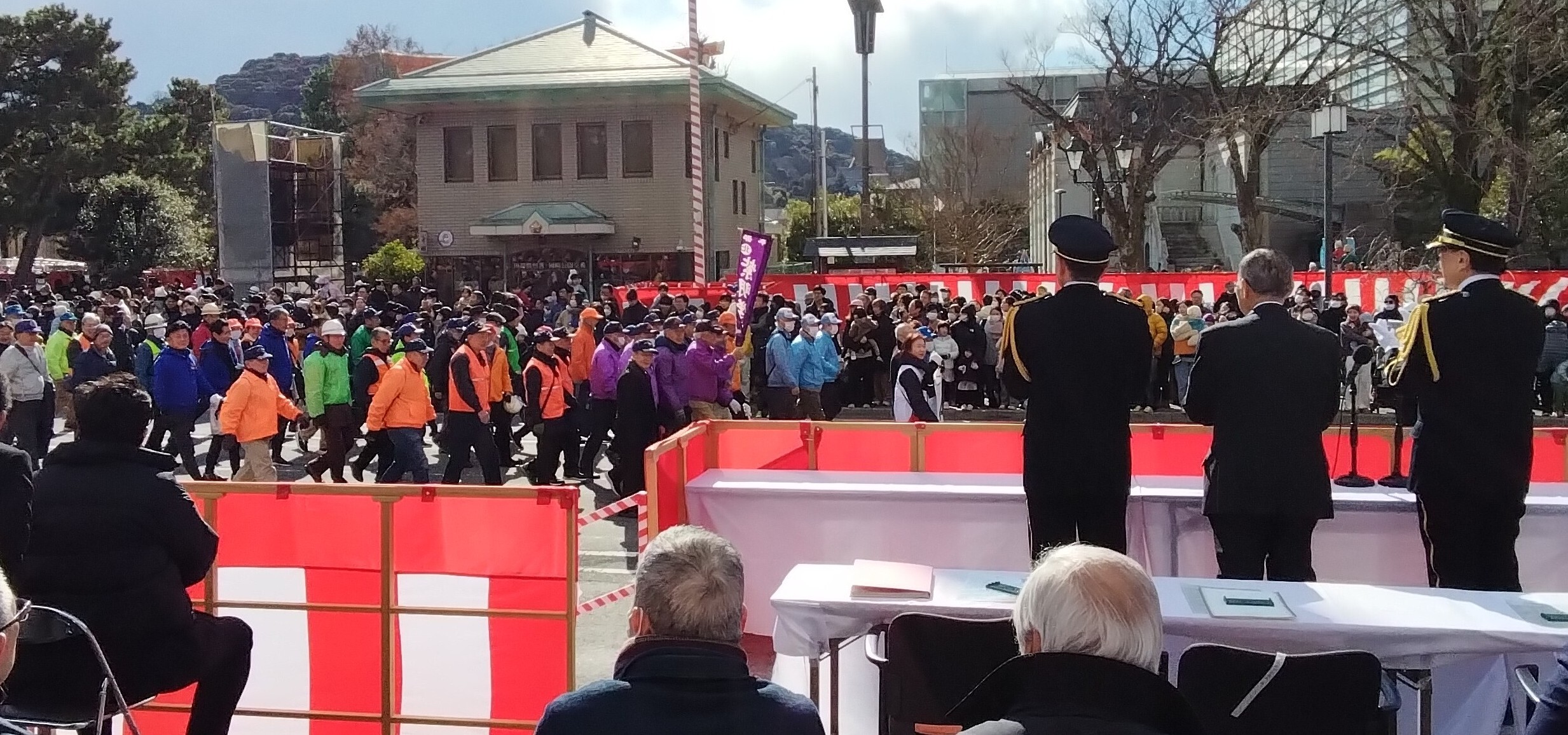 北区自主防災会、北自衛消防隊、北ジュニア消防団の皆様には、小雪降る中、早朝から市民パレードに参加いただき、寒い中、お疲れ様でした。皆様の行進される姿を見て改めて北区の地域力を実感しました。