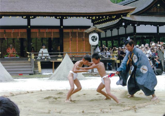 上賀茂神社の立砂と相撲を画面内に捉えたアングルが、この神事の厳かな雰囲気と和やかな空気感が画面内に同居していて、この場が単なる子供相撲ではなく、「神事」であることが説明なしでもわかります。子どもたちの奮闘ぶりもこのお祭りならではの空気感をよく伝えています。