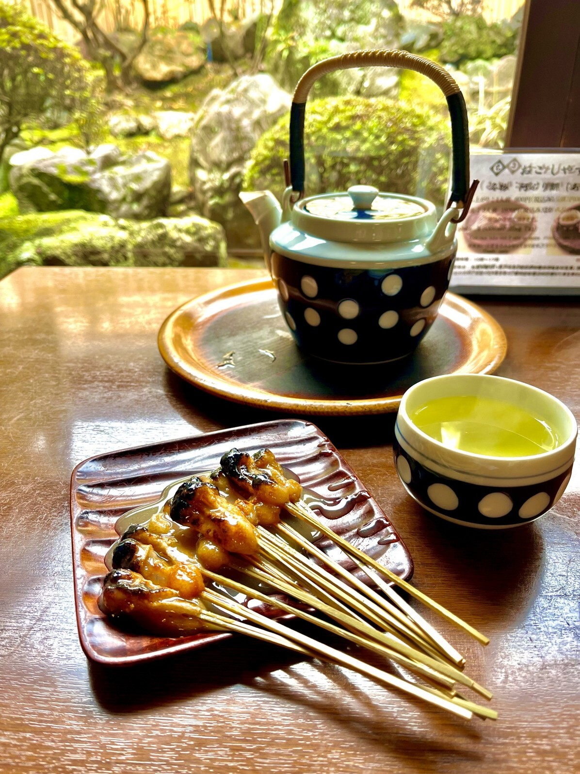 手前のお餅にピントを合わせ、窓からの自然光をうまく利用して、タレの艶と焦げ目の質感を表現されています。また単に食べ物だけを撮るのではなく、奥に庭園を配置し、画面内に水玉模様の急須や湯呑みを取り入れることで、写真にリズム感が生まれています。見た瞬間に「おいしそう!」「ここに行ってみたい」と思わせる力がある写真です。