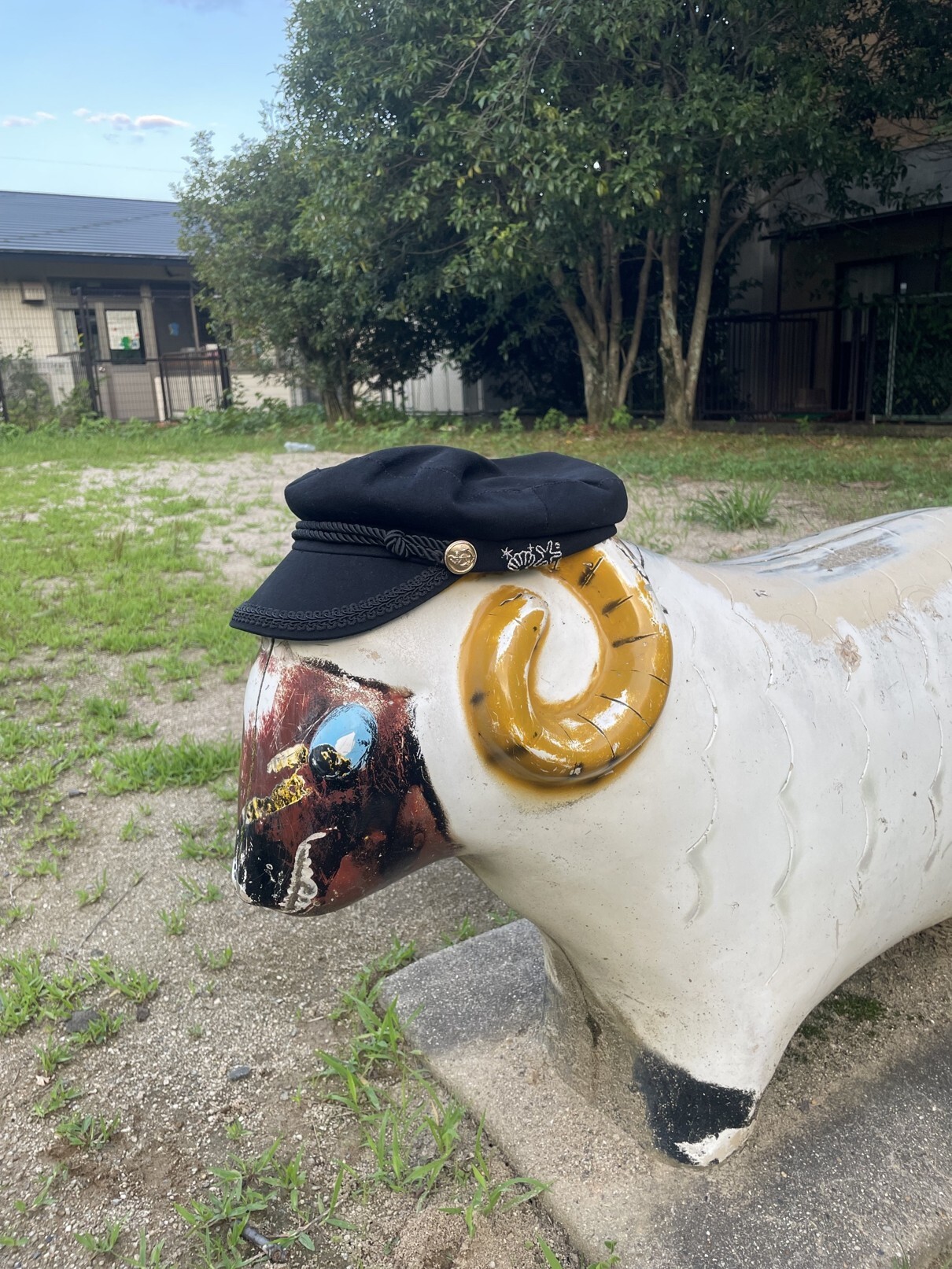 公園の羊の遊具に、わたしの帽子を被せて遊んでいた時の写真。