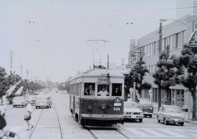 1969年5月11日撮影 京都市電 西大路線 北野白梅町付近 4号系統 500形 534号
