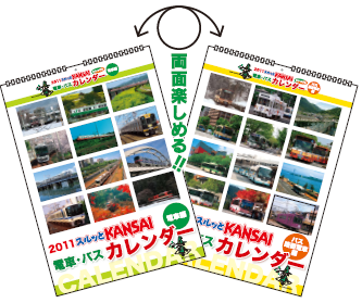 スルッとKANSAI協議会加盟各社局の鉄道とバスの写真が多数掲載されたカレンダー(京都市バスが2月に登場)。2010年カレンダーは各月毎に電車とバスの2パターンを用意しました。きっとお好みの写真が見つかるはず!