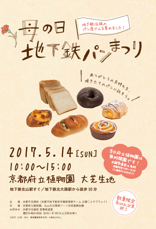 地下鉄沿線地域の活性化と地下鉄の更なる利用促進を目的に,母の日に合わせて,沿線地域の街のパン屋さん17店舗が集合し,バラエティあふれるパンを販売する「母の日 地下鉄パンまつり」を開催しました。