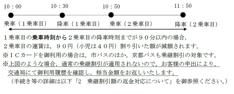市バスの前乗り後降り方式の実証実験中における乗継割引及び昼間割引回数券の取扱いについて