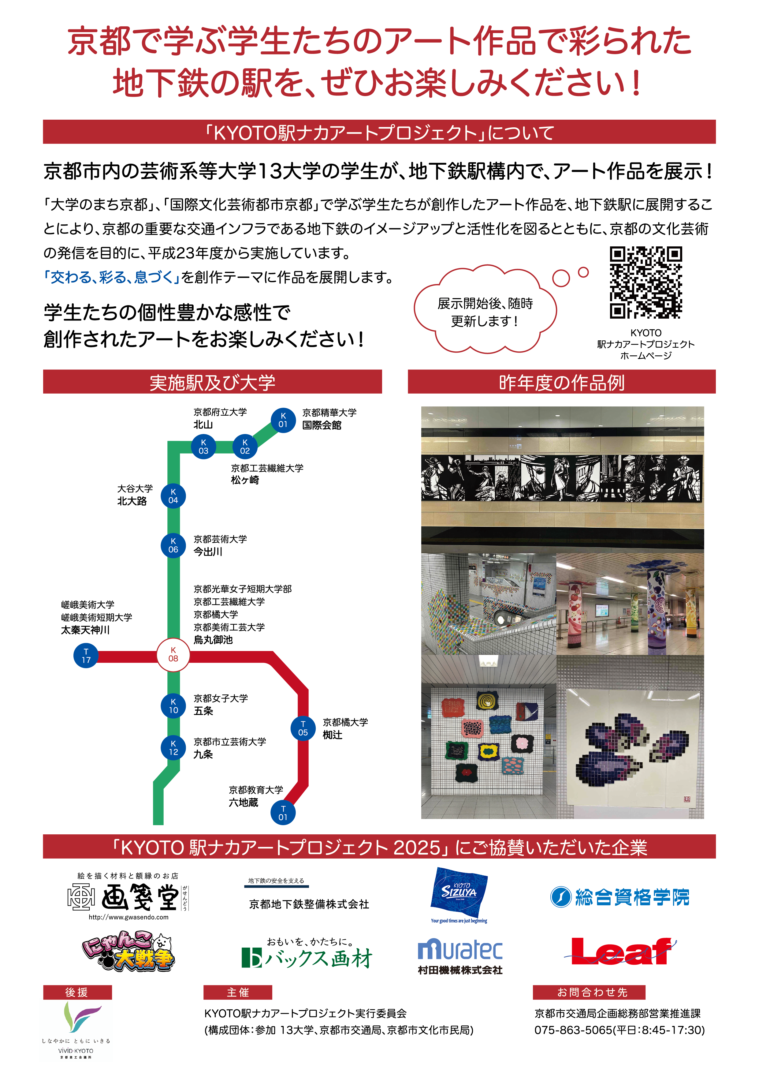 【報道発表資料】2025.10.29 「KYOTO駅ナカアートプロジェクト2025」~過去最多13大学の学生が地下鉄駅をアートでジャック~