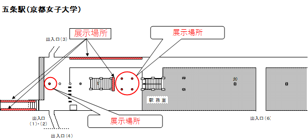 地下鉄烏丸御池駅構内北側(出入口3・4付近)に設置されたギャラリースペース。