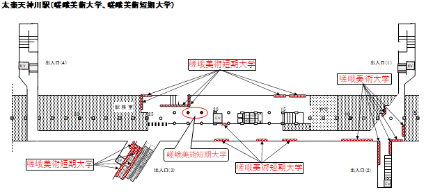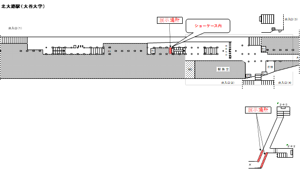 設置場所:出入口(3)付近、改札内・改札外の通路壁面