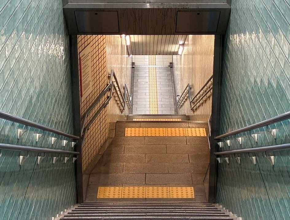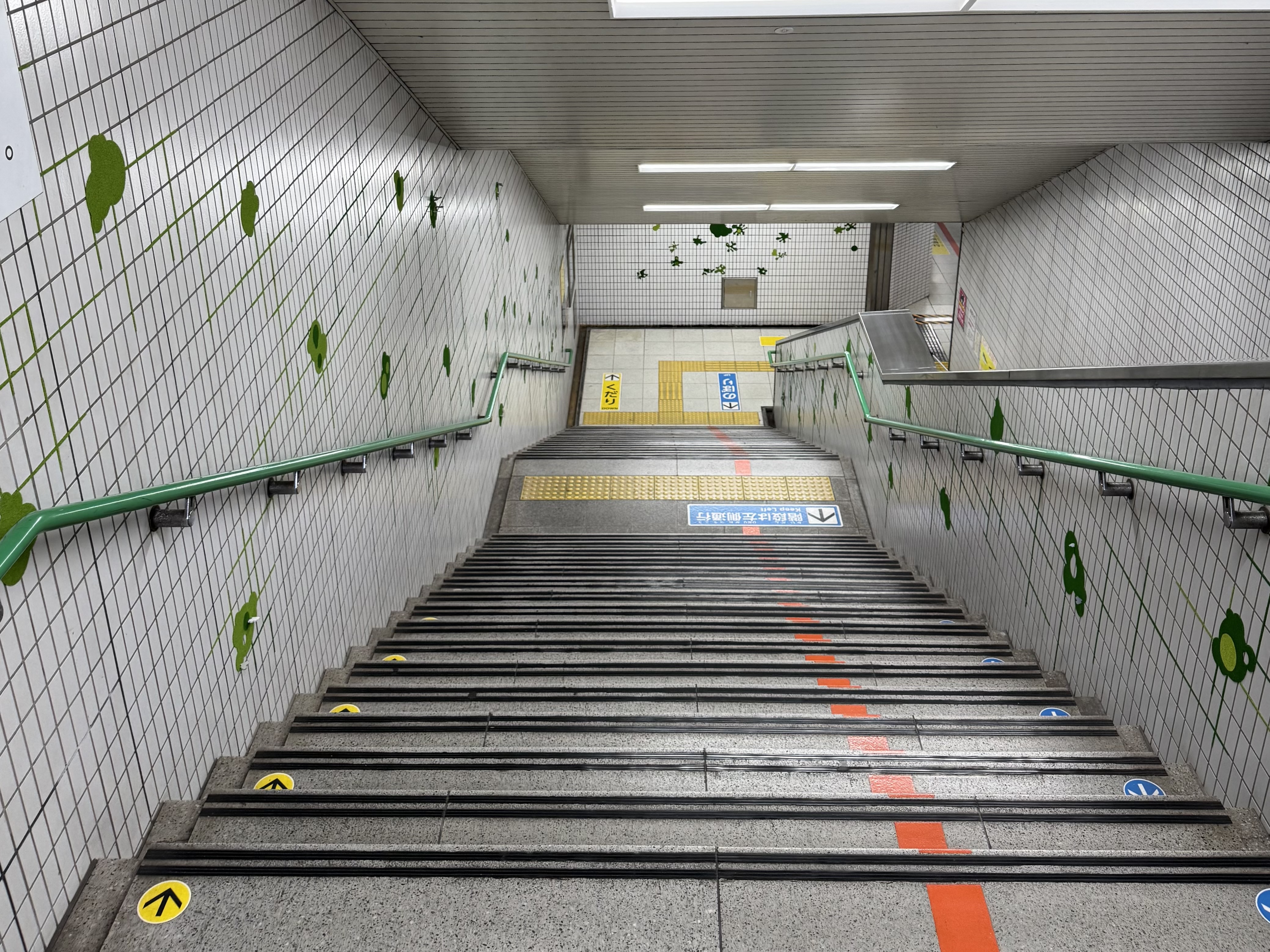 設置場所:改札内の通路壁面・天井、出入口(1)階段壁面
