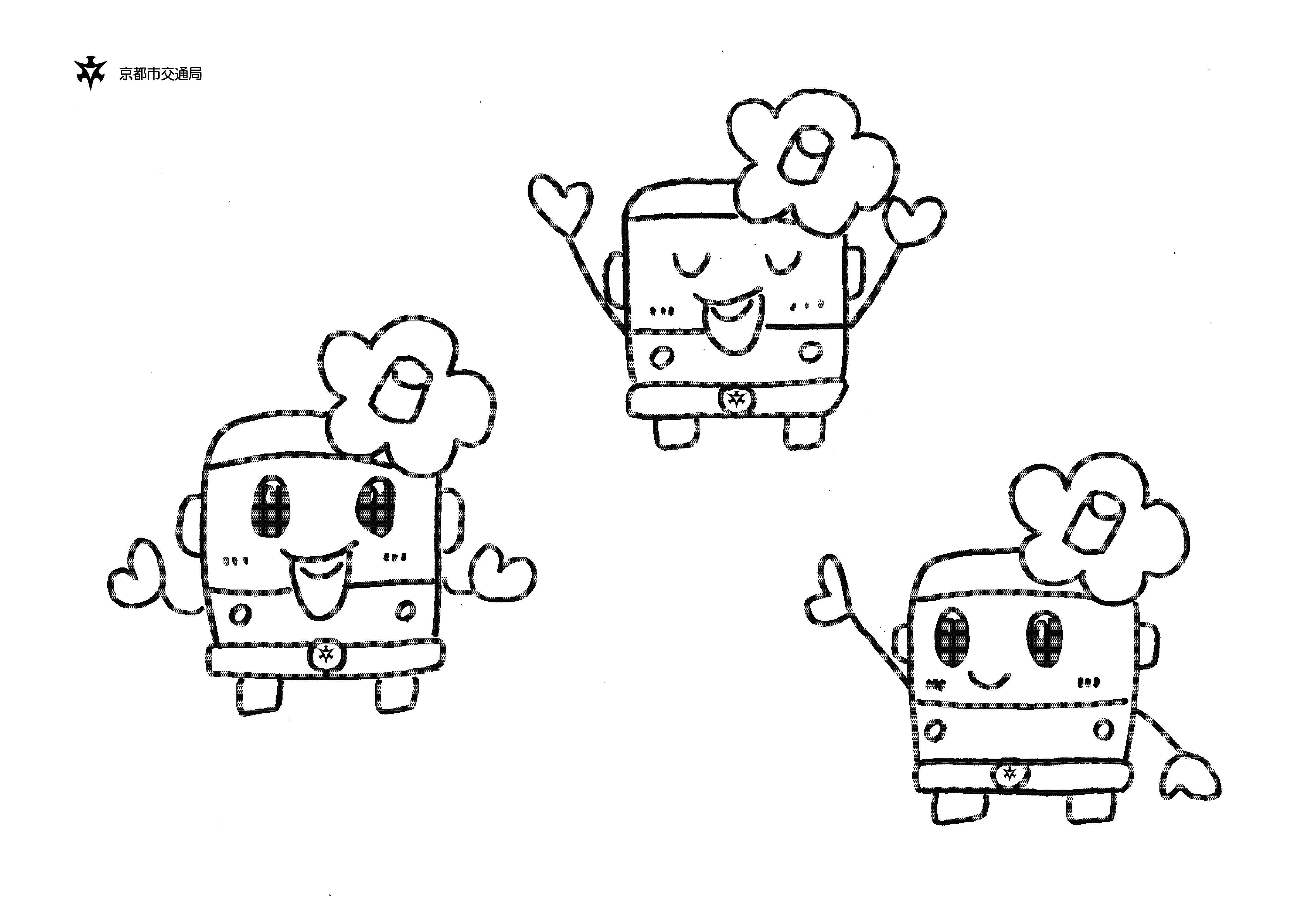 【ぬりえ】京ちゃん・都くん・市バス車両のPDFはこちらから印刷できます。