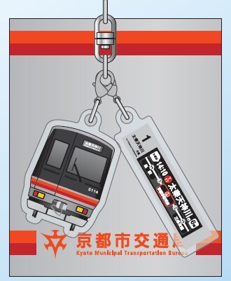 烏丸線初期導入10系車両をデザインしたキーホルダーに記念ヘッドマークのチャームをセットにした2連キーホルダーです。