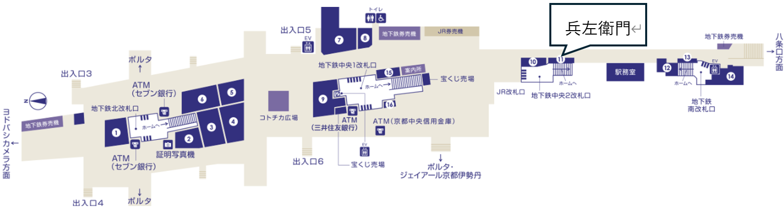 地下鉄京都駅中央2改札口付近