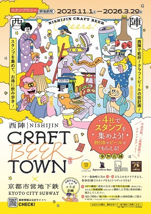 京都市交通局では、昨年度に引き続き、クラフトビール醸造所の西陣麦酒が主催する「西陣 CRAFT BEER TOWN」とコラボしたスタンプラリー企画を実施します。