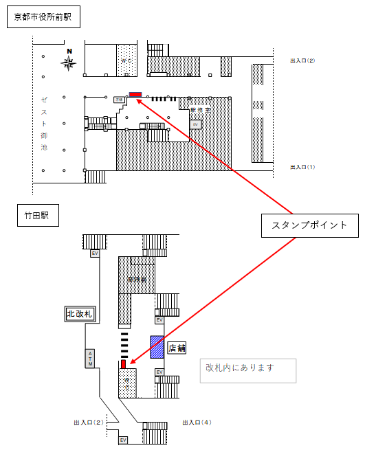 京都市営地下鉄「竹田」駅 北改札口内(ABC祭会場最寄り)