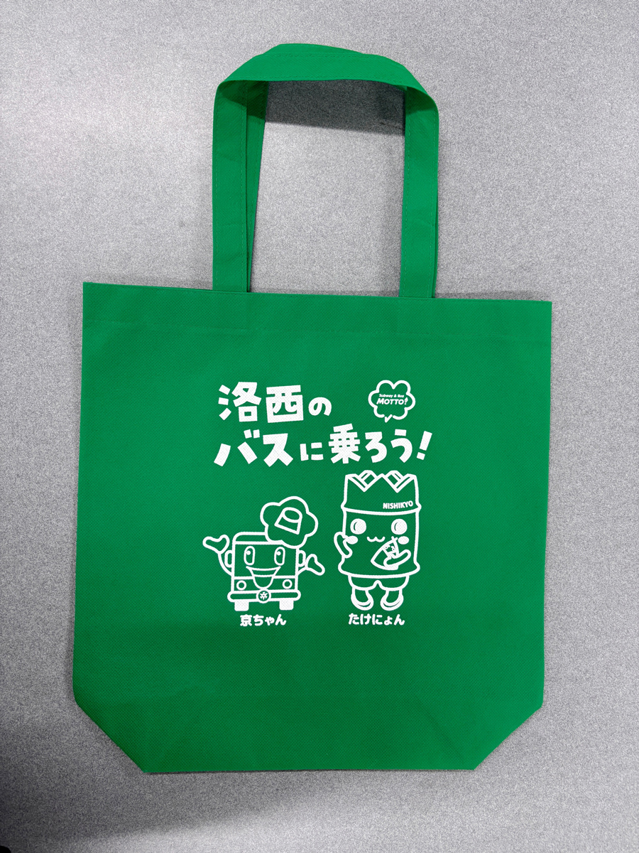 展示車両に乗車いただいた方へ、「たけにょん×京ちゃん 特製トートバッグ」をプレゼントいたします。(先着500個)