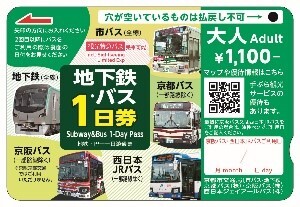京都市営地下鉄全線が1日間乗り降り自由となる乗車券です。地下鉄沿線の主要観光施設で優待特典が受けられます。