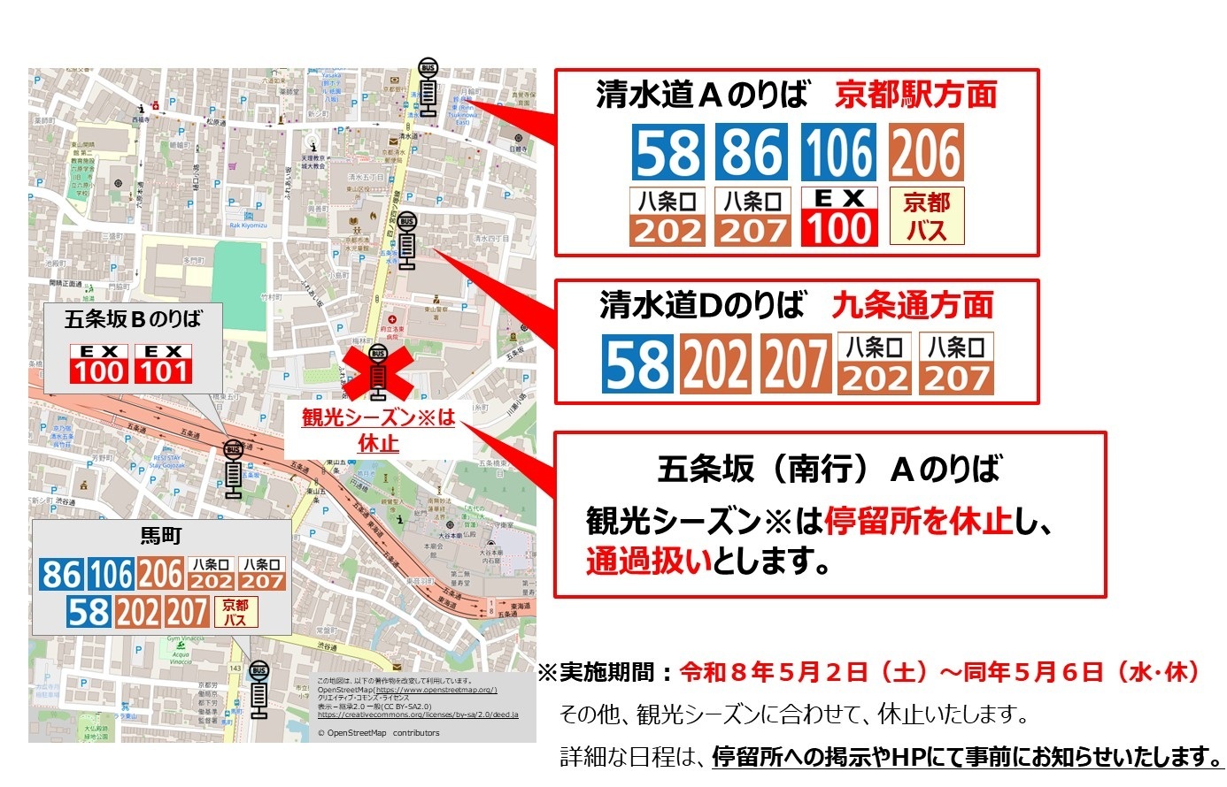 五条坂(南行)停留所の休止及び、永観堂周辺での経路変更について