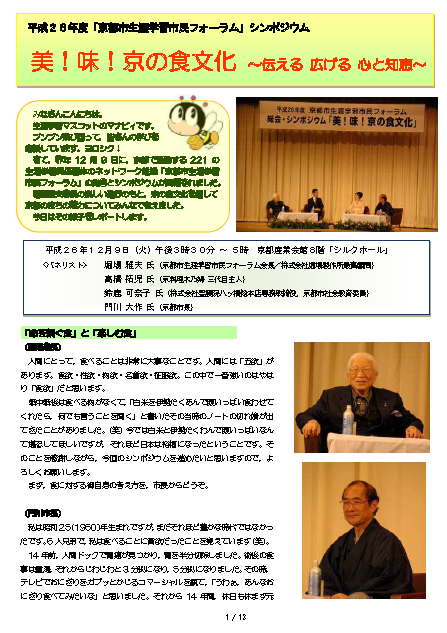 京都市生涯学習市民フォーラム平成26年度総会・シンポジウム 「美!味! 京の食文化 ~伝える 広げる 心と知恵~」