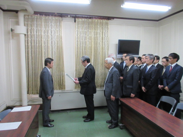 平成28年3月7日月曜日、京都市役所4階の教育委員室で、「醒泉・淳風統合校開校準備協議会」の代表の方々により、在田教育長へ「校名要望書」が手渡されました。