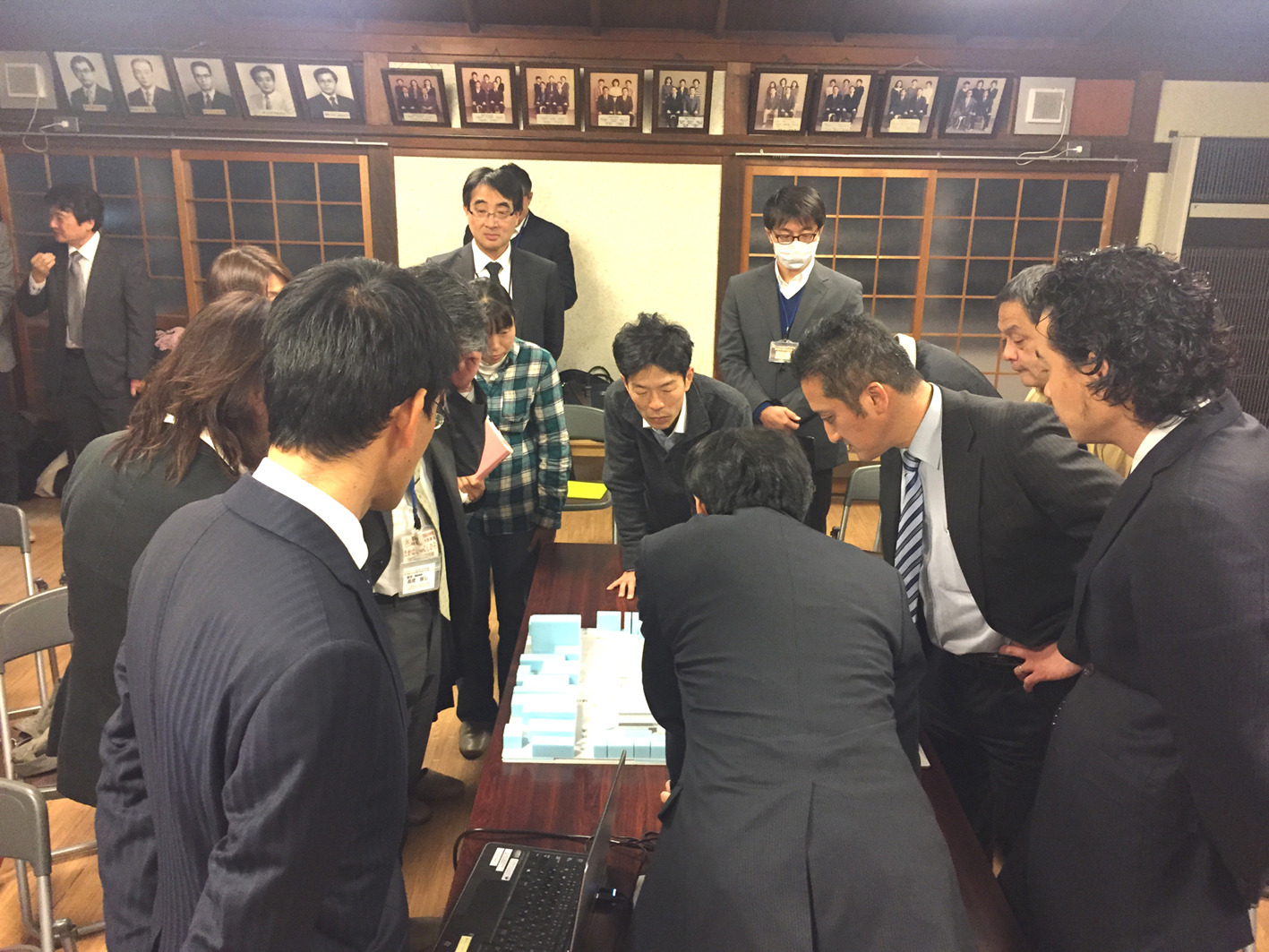 地元・PTA・学校の代表者に集まっていただき、27年7月から4回にわたって実施した「新校舎建設ワークショップ」。