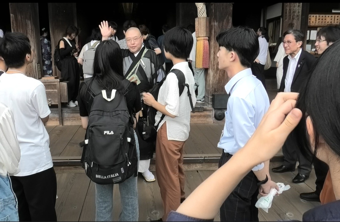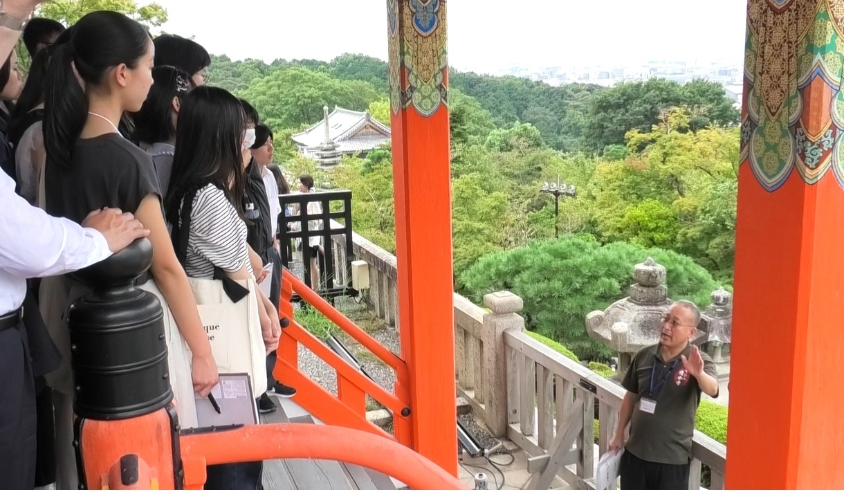 続いて、森執事と内田学芸員のご案内のもと、清水寺の境内を散策しました。清水寺がどのような意図をもって建立され、長い歴史の中で人々に大切にされてきたのかを聞きながら歩くことで、「今ここにある意味」を考える機会となりました。ある生徒は「背景を知ったことで、これまでから知っているつもりだったけど、より深い意味を持つ存在として清水寺を見ることができた」と語り、普段とは異なる角度から清水寺をとらえ直す機会となりました。