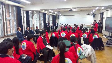 まず、会の冒頭に、生徒実行委員長の市立堀川高校2年荒川陽さんから、エキスポ成功に向けた意気込みと、知恵や力を結集して生徒実行委員会の活動を進めていこうという旨の挨拶がありました。