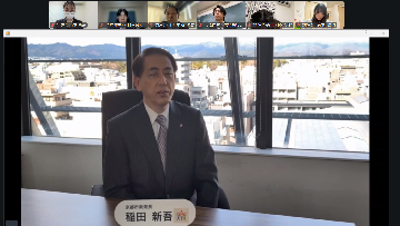 稲田新吾 京都市教育長からのビデオメッセージの様子