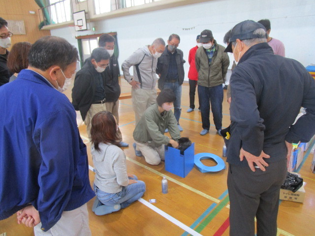↑非常用トイレとトイレ凝固剤の使用訓練