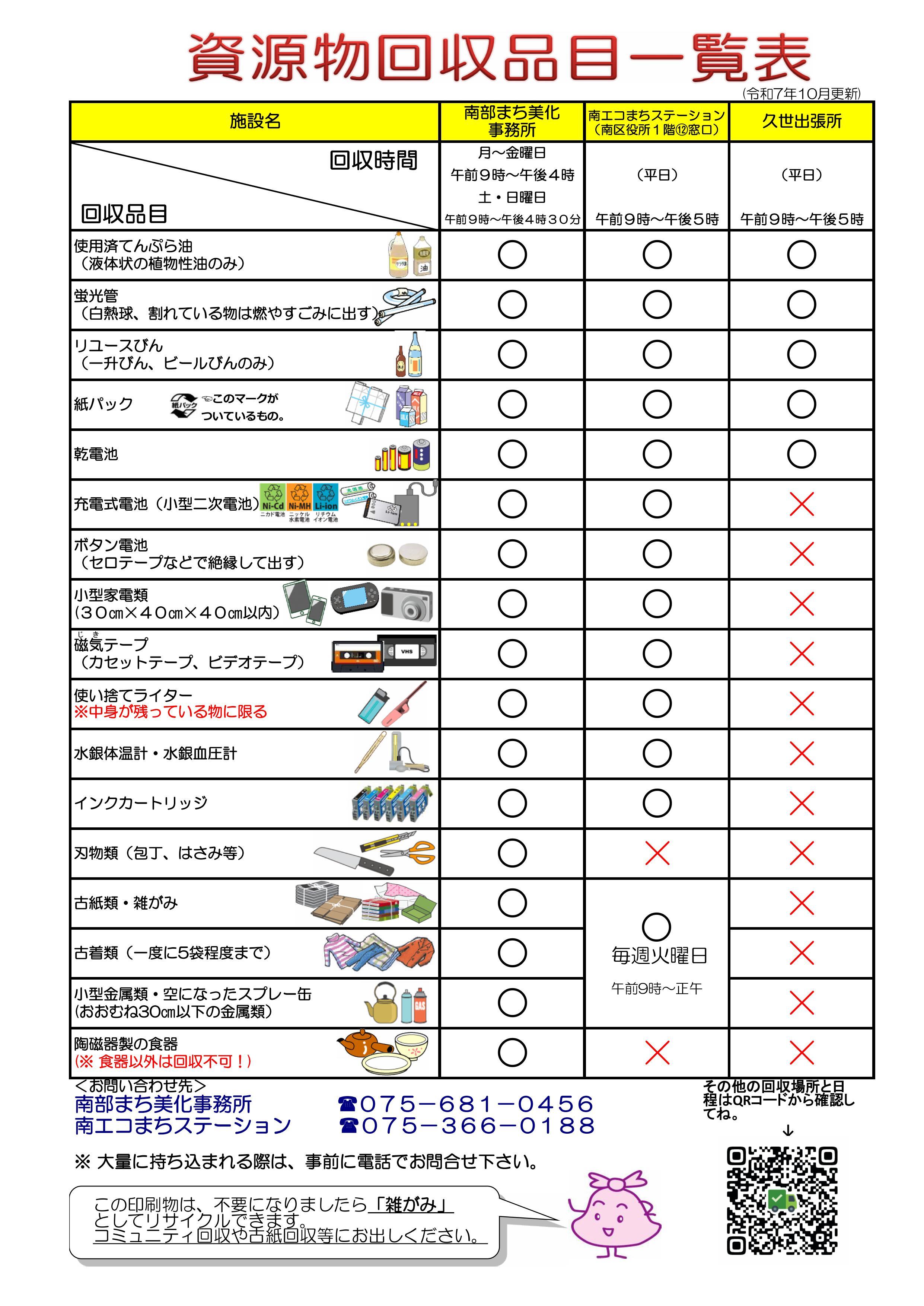 南エコまちステーション(南区役所1階) 電話:075-366-0188