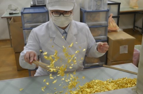 一般の金箔は金・銀・銅を配合していますが,健康面の配慮から銅抜きの金箔が求められるようになり,試行錯誤の末,堀金箔粉は金と銀だけで作られ検品を徹底した食用金箔を開発して、信用を確立していきました。