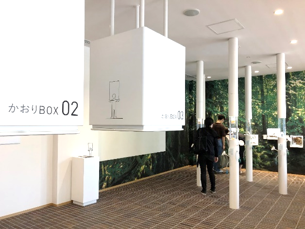 こうした香り文化の伝承と同時に、一方で、新しい香り文化の創造にも取り組まれています。平成30年に開設された香りの情報発信拠点「薫習館(くんじゅうかん)」は新たなファンを取り込む場となっています。その中でも「かおりBOX」は、インスタグラムでもたくさん投稿されている「映えスポット」として若者層を惹きつけています。また、お香の製造と販売だけでなく、ギャラリースペース「松吟ロビー」では様々な企画展、ホールでは講演会やイベントを行うなど、様々な文化活動を通して、社会貢献活動に努めておられます。
