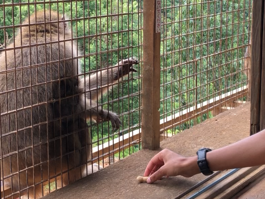 Visitors are encouraged to interact with the monkeys but to maintain a safe distance. It is against the rules to feed the monkeys directly, but visitors can purchase snacks, such as peanuts and apples, inside the visitors’ center and feed them to the monkeys through a wire fence.