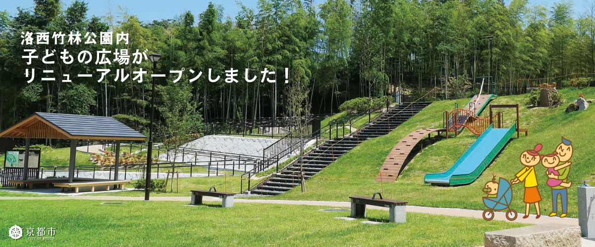 - 遊び場がたくさんあります(洛西竹林公園、大蛇ヶ池公園、境谷公園、新林池公園、洛西支所1階「らくさい きのひろば」など)。