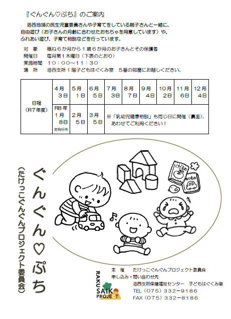 実施場所 洛西支所1階子どもはぐくみ室 5番の部屋にお越しください。