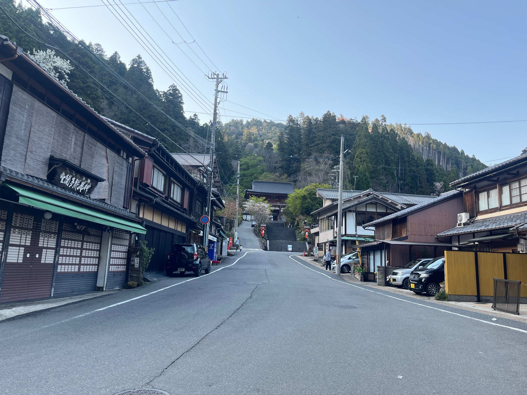 少し遅めの時間になってしまいましたが、鞍馬寺の山門前を出発。10月22日の鞍馬火祭のときには幻想的な風景が繰り広げられるこの場所も、人通りはまばら。