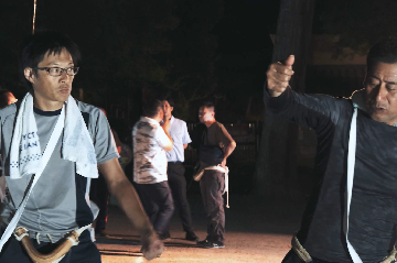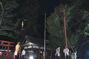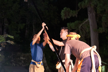 夜間の練習は剣鉾の先端を目で見て確認することが難しく、より一層全身の感覚を研ぎ澄ませなければならない。若手が本鉾と呼ばれる一番大きな鉾を差す際には、空気が張り詰め、その場にいる全員が神経を集中させる。
