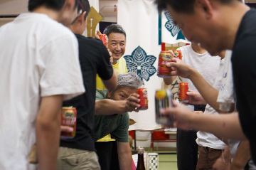 練習後は軽くお酒を酌み交わしながら、ざっくばらんに話す交流の場。ベテランも若手も分け隔てなく、剣鉾の背景や歴史、地域との関わりについて熱心に語り合うシーンも見られた。こうして、技術だけでなく地域に対する思いが継承されている。