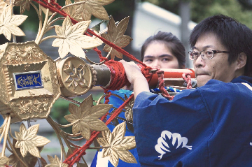 保存会のメンバーは、「招きや鈴を綺麗に動かすには最低でも3年はかかる」と口を揃える。最初は重量を支えるだけでも精一杯だが、次第に剣鉾の芯を捉えてなんとか操れるようになっていくようだ。
