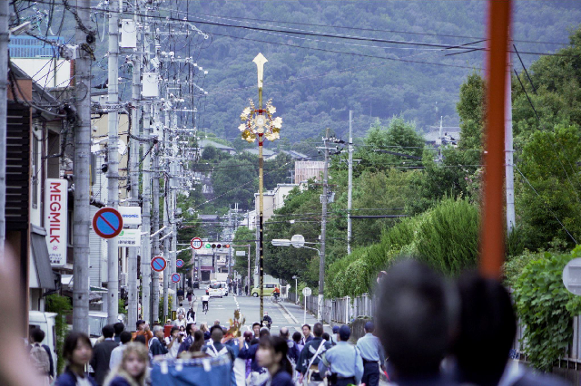 吉田山と鴨川の間に位置する吉田地域は、京都大学に通う学生たちや昔からこの土地で商売を営んできた住民たちが混ざり合うエリア。吉田神社今宮社の神幸祭では、剣鉾の差し手たちが神輿を先導しながら巡行し「サイアレ」という掛け声とともに剣鉾の鈴(りん)の音を響かせる。