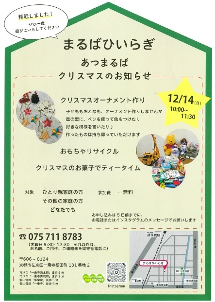 ひとり親家庭支援活動を行っている「まるばひいらぎ」からのクリスマスイベントのお知らせです。